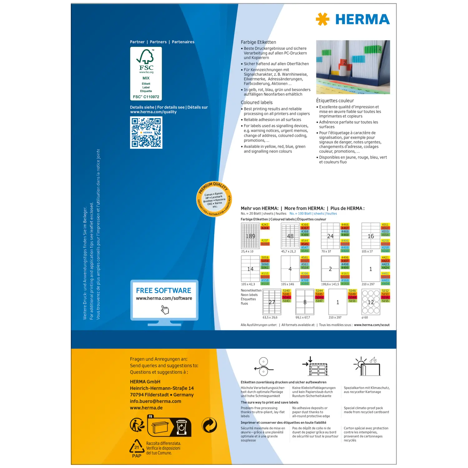 Etichette colorate, A4, 105 x 37 mm, rosso, adesivo permanente