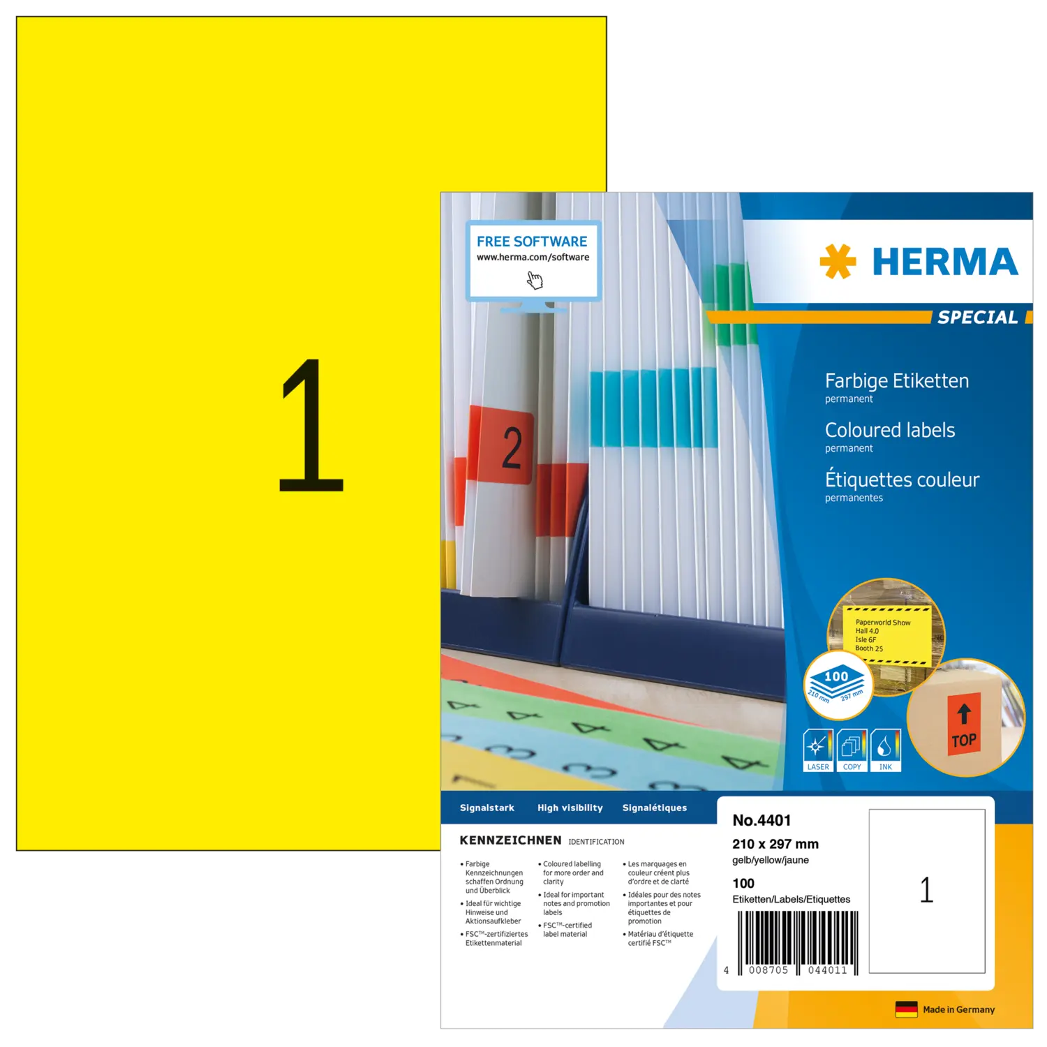 Etichette colorate, A4, 210 x 297 mm, giallo, adesivo permanente