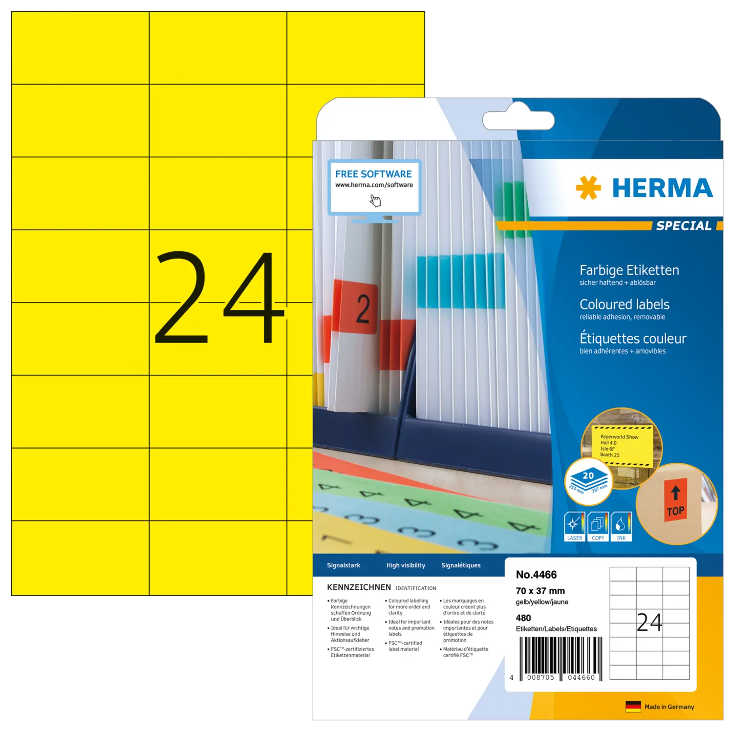 Etichette colorate, A4, 70 x 37 mm, giallo, staccabili