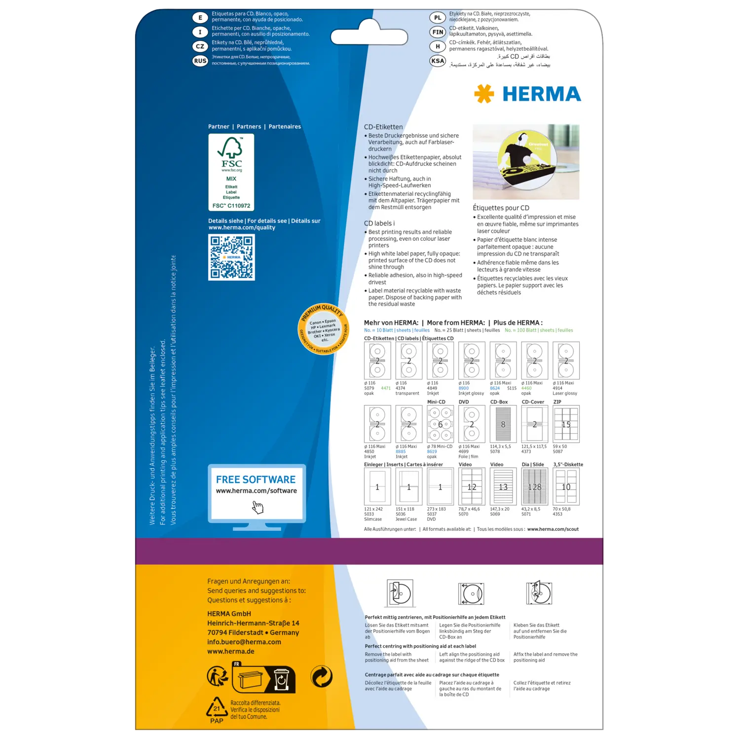 Etichette per CD, A4, Ø 116 mm, opache, adesivo permanente