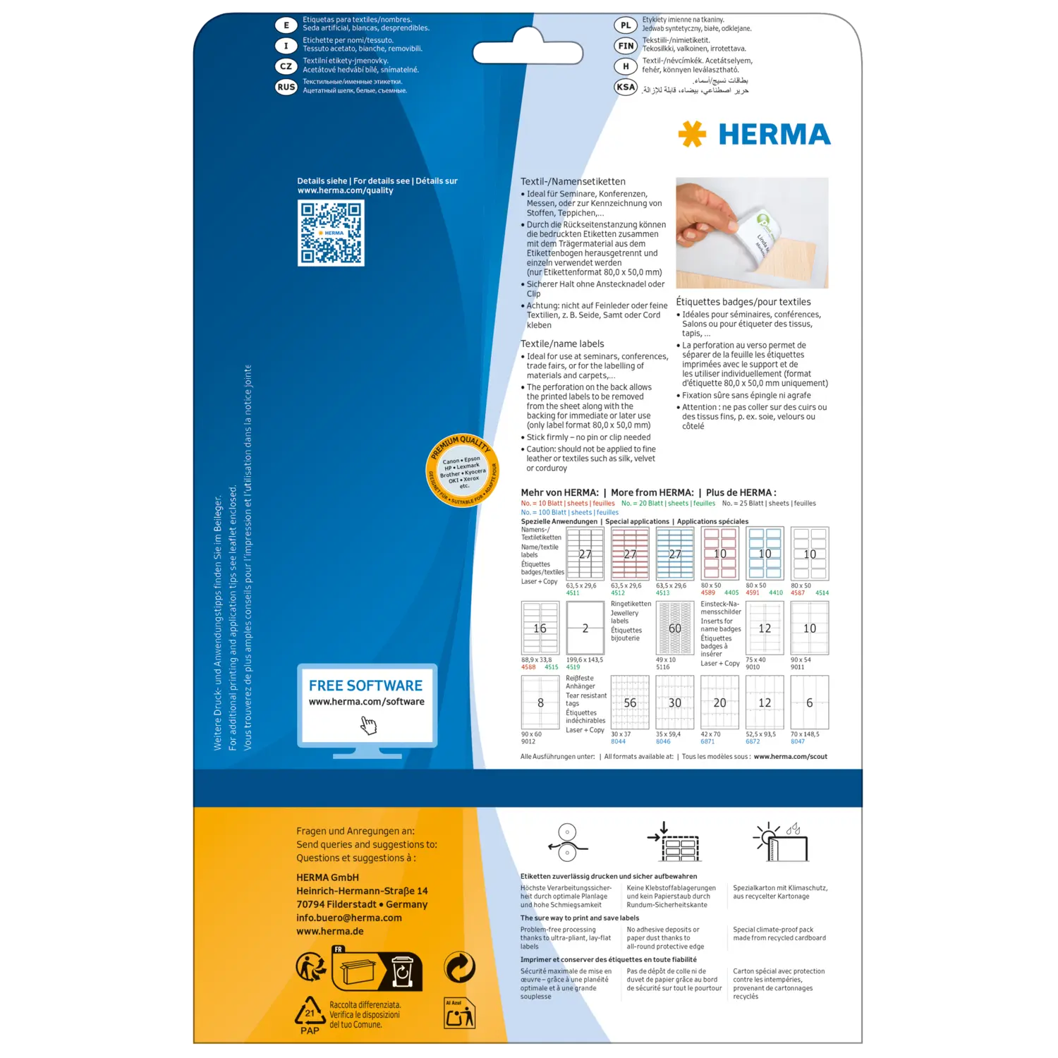 - Ideali come targhette con il nome per seminari, conferenze, fiere (anche per etichettare stoffe, tappeti e materassi)