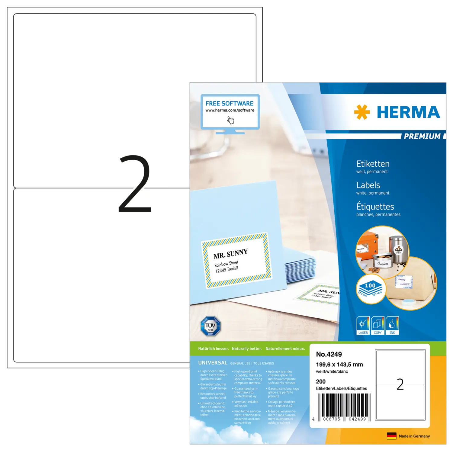 Etichette per indirizzi, PREMIUM, A4, 199,6 x 143,5 mm, bianco, adesivo permanente