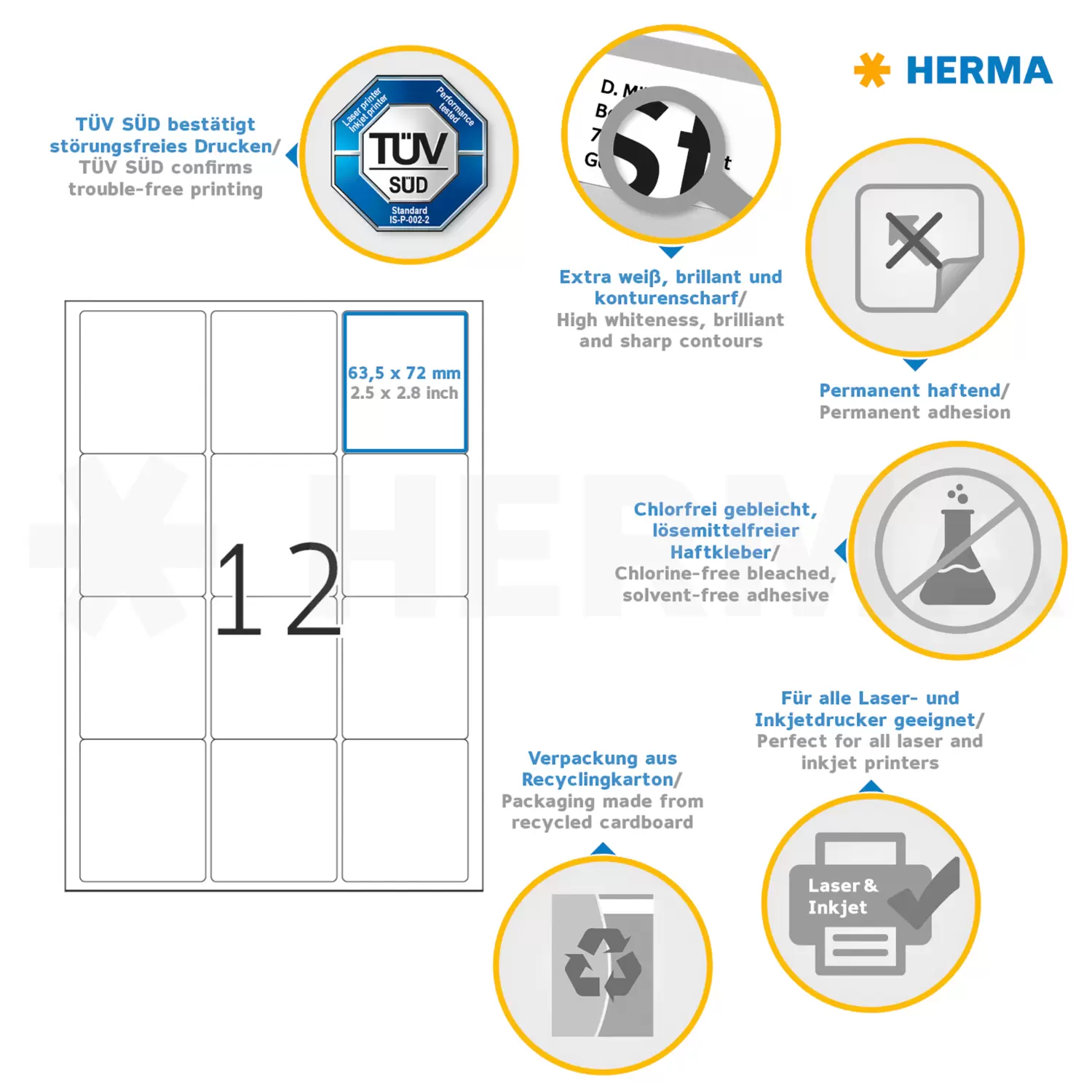 Etichette PREMIUM, A4, 63,5 x 72 mm, bianco, adesivo permanente
