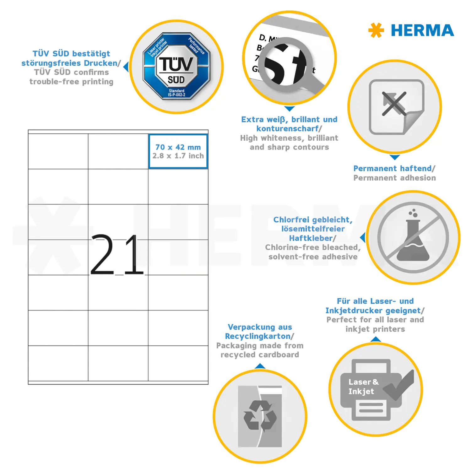 Etichette PREMIUM, A4, 70 x 42 mm, bianco, adesivo permanente