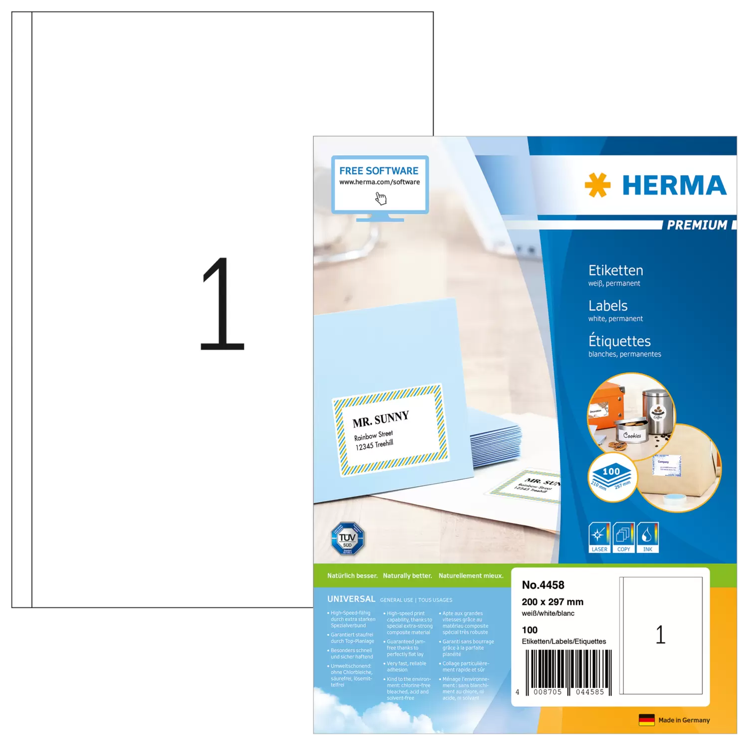 Etichette PREMIUM, A4, 200 x 297 mm, bianco, adesivo permanente