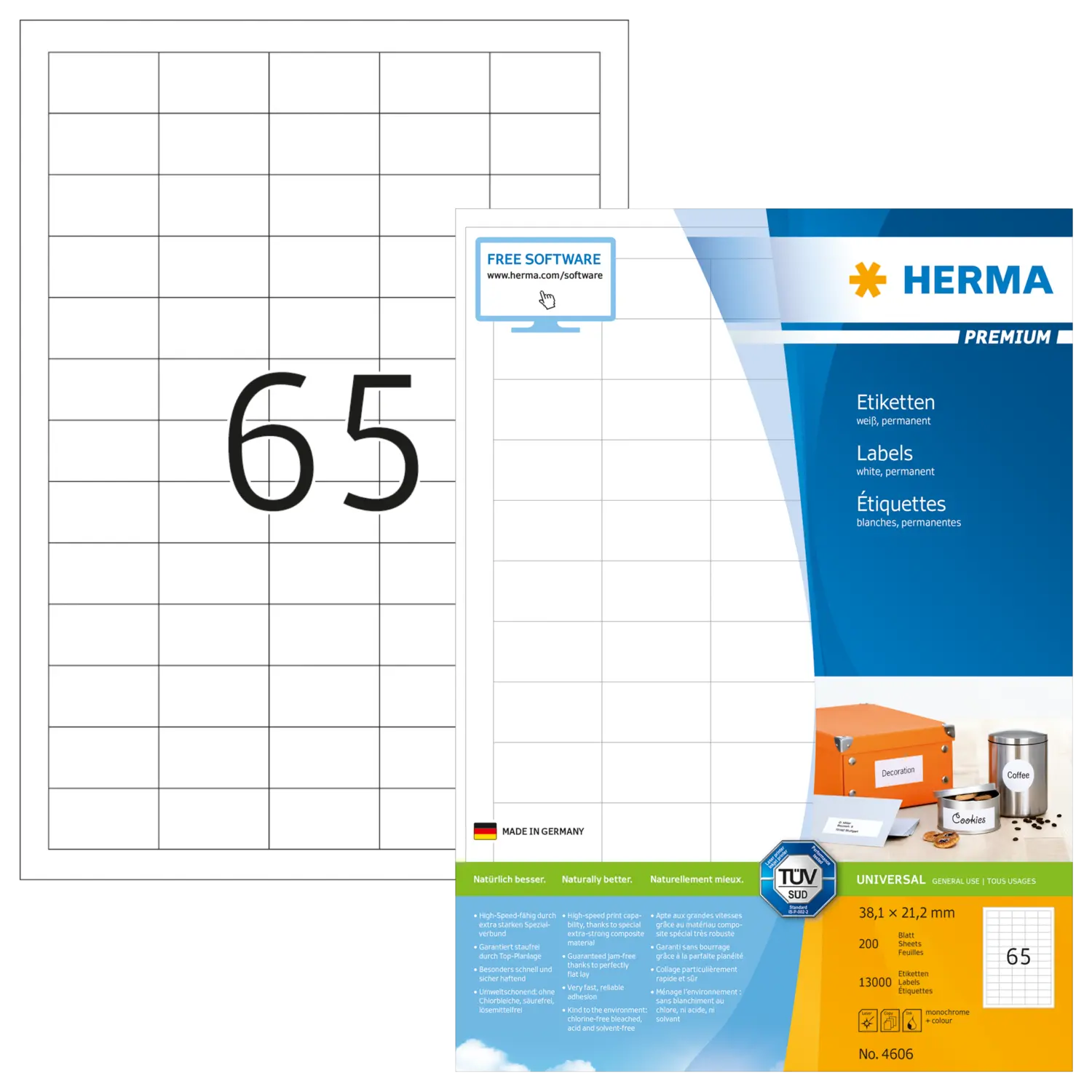 Etichette PREMIUM, A4, 38,1 x 21,2 mm, bianco, adesivo permanente