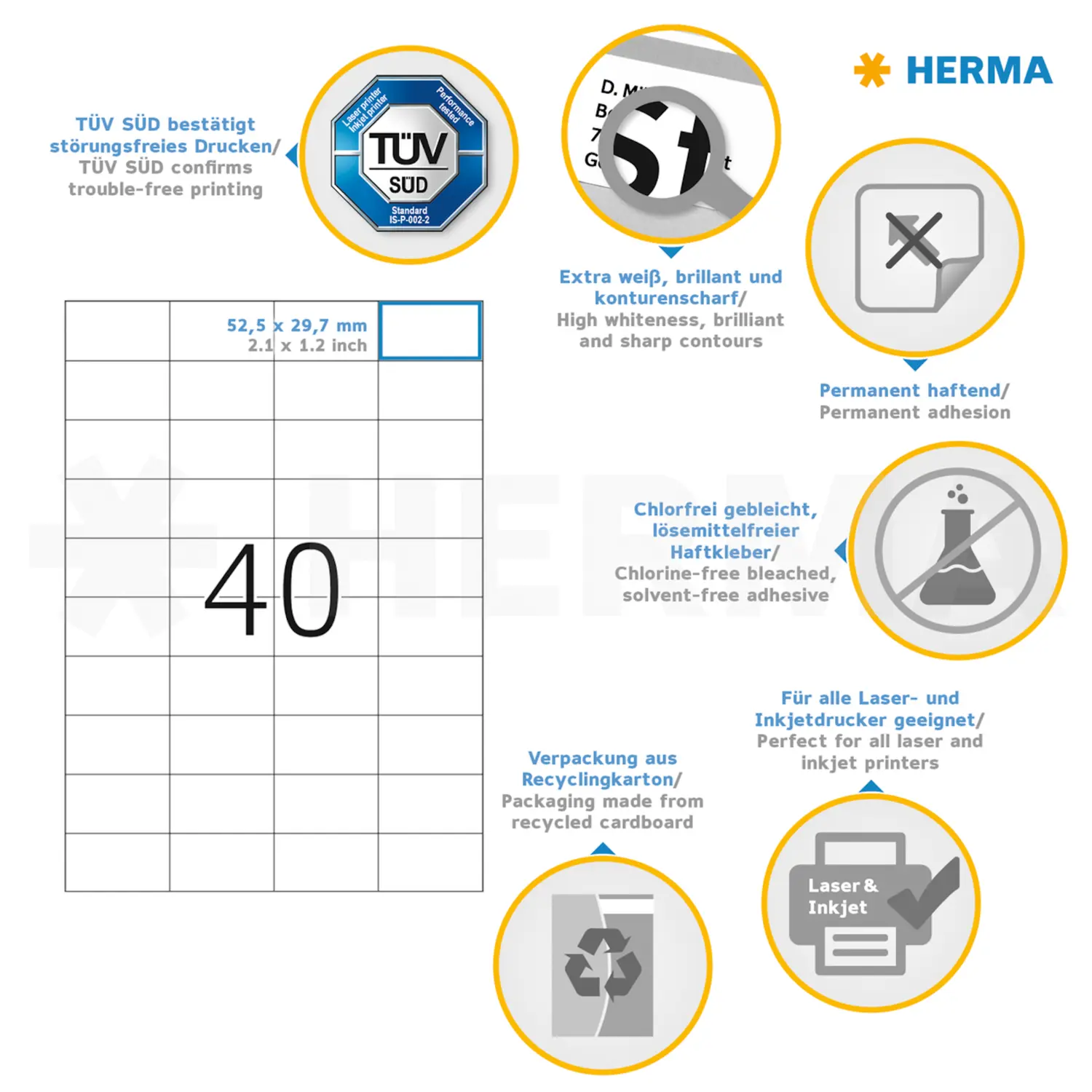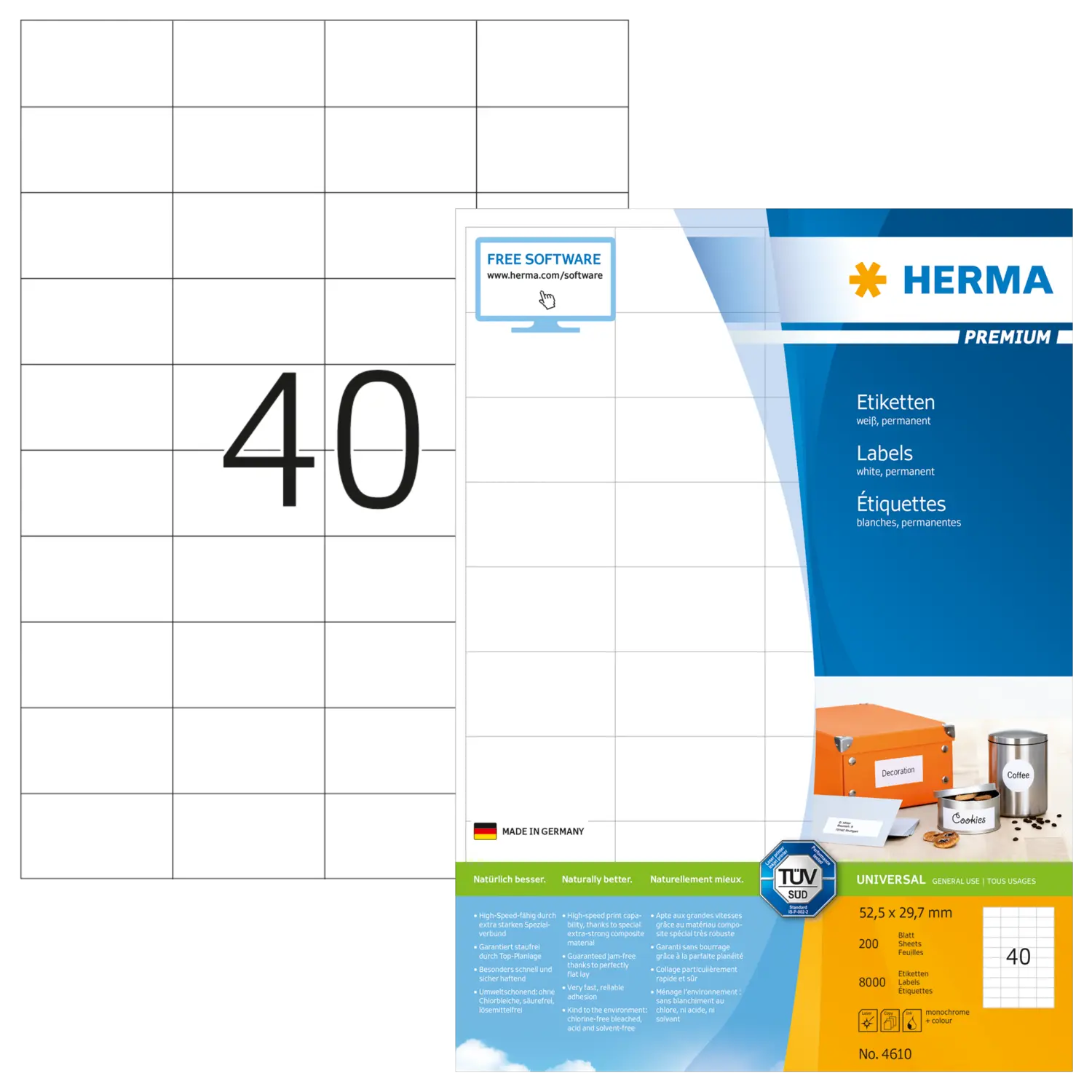 Etichette PREMIUM, A4, 52,5 x 29,7 mm, bianco, adesivo permanente
