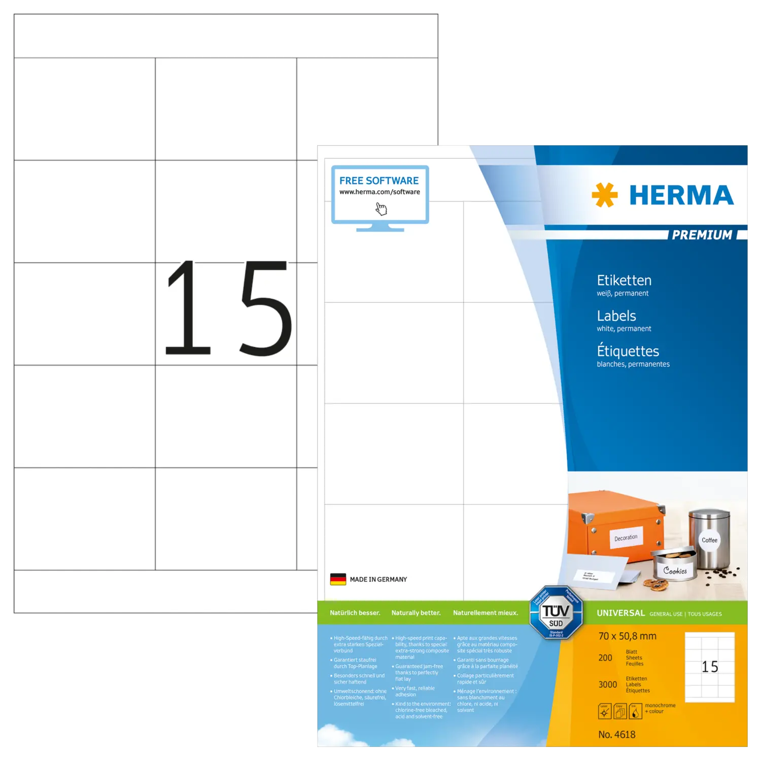 Etichette PREMIUM, A4, 70 x 50,8 mm, bianco, adesivo permanente