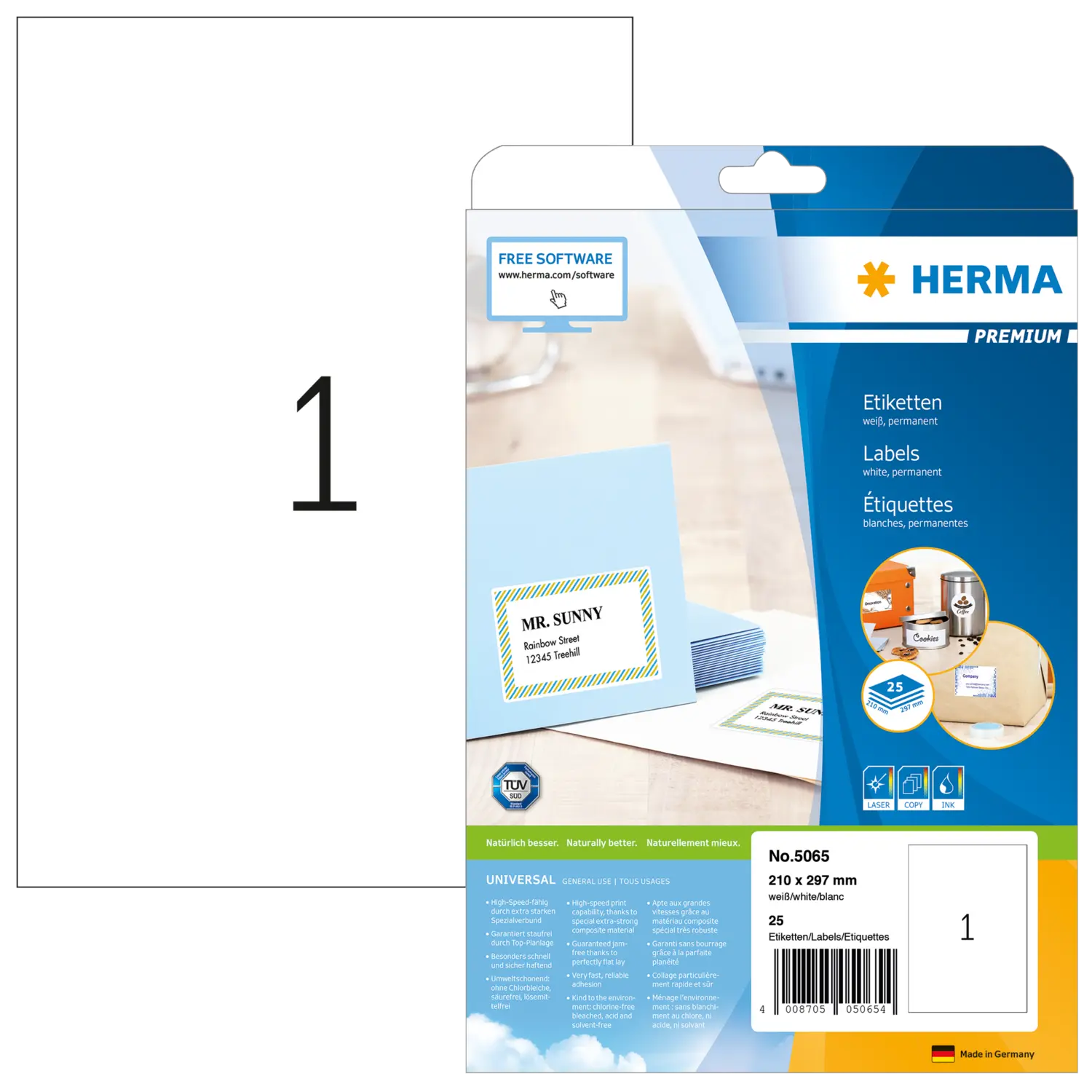 Etichette PREMIUM, A4, 210 x 297 mm, bianco, adesivo permanente