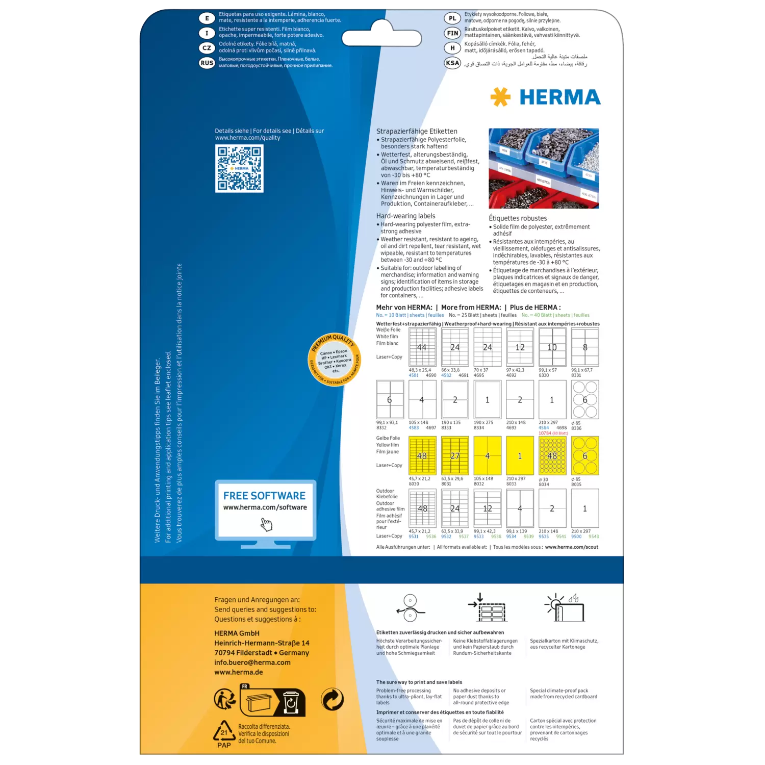 Etichette impermeabili in fogli, A4, 66 x 33,8 mm, bianco, estremo potere adesivo