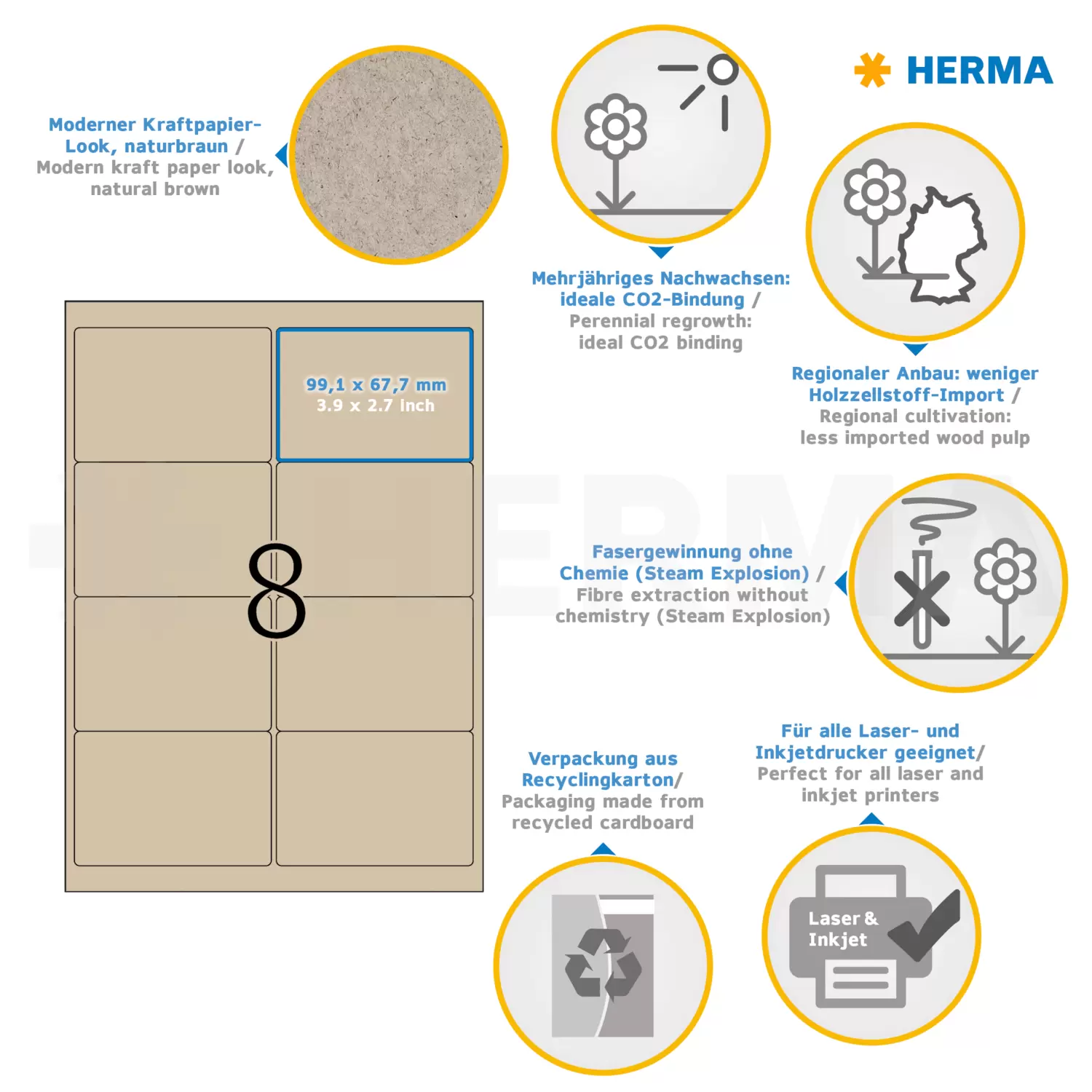 Etichette in carta Silphie, A4, 99,1 x 67,7 mm, marrone, adesivo permanente