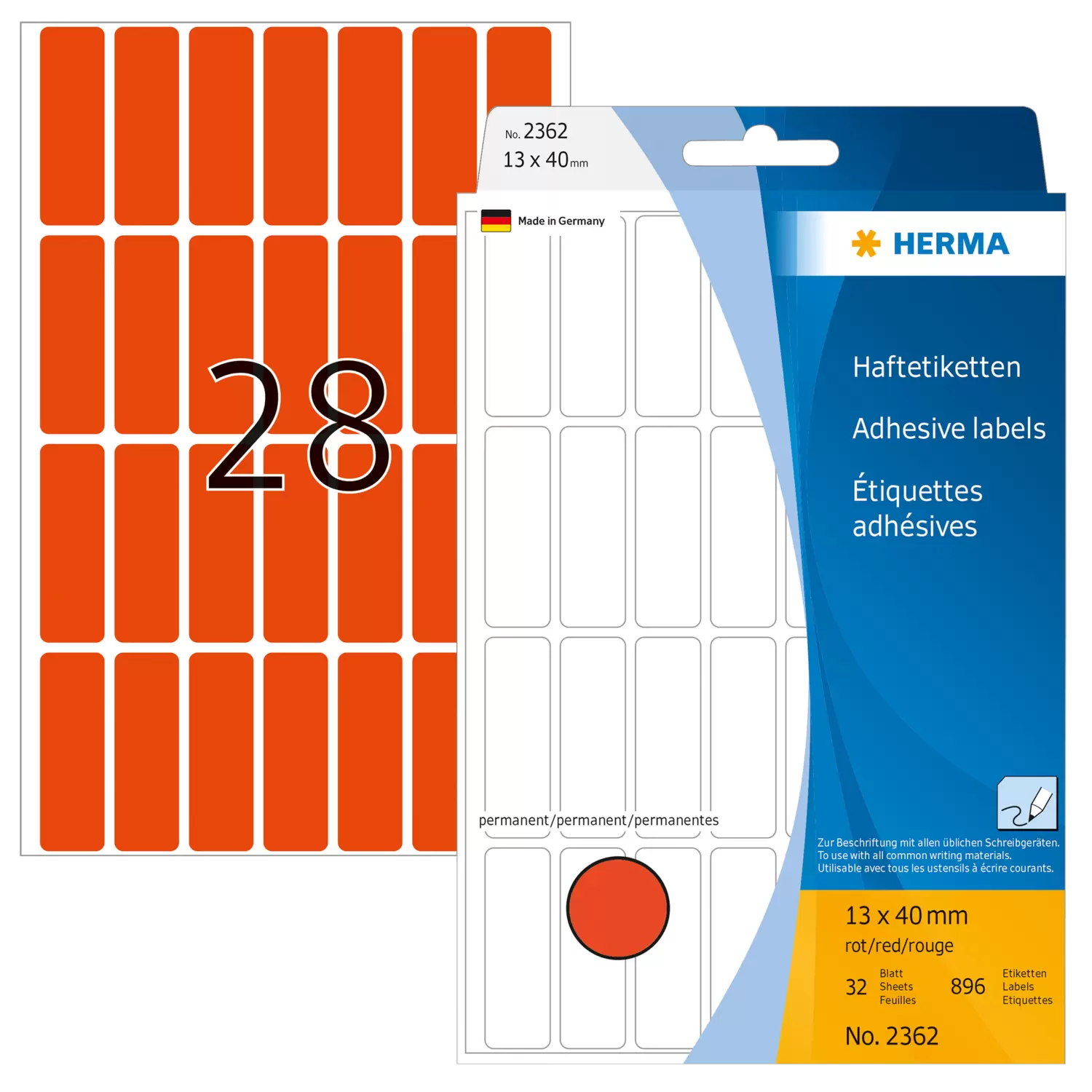 Etichette multiuso, 13 x 40 mm, rosso, adesivo permanente, per scrittura a mano