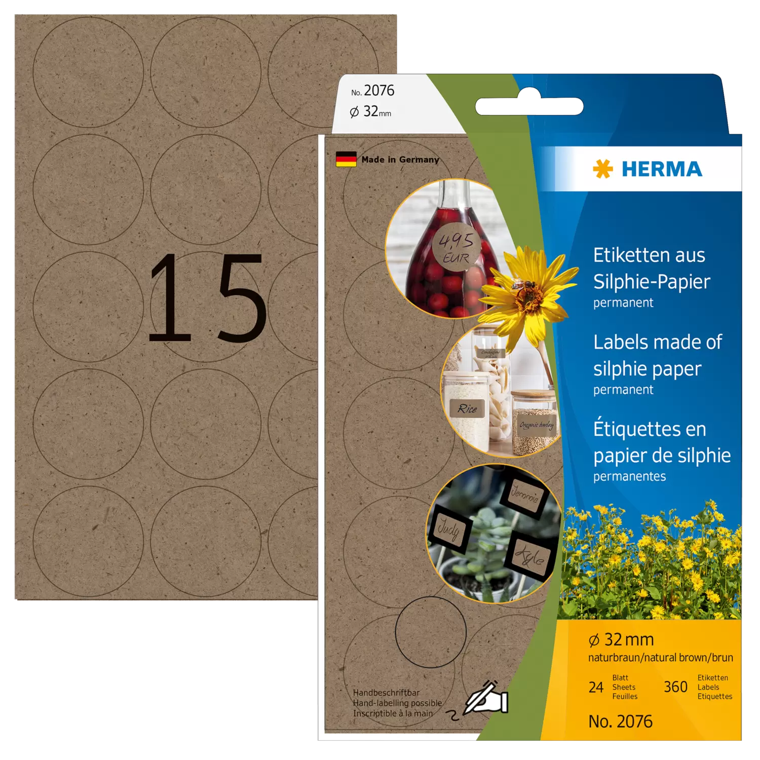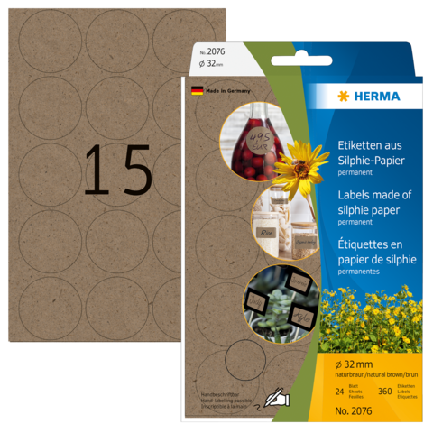 Etichette multiuso, Ø 32 mm, carta silphie, permanente, per scrittura a mano
