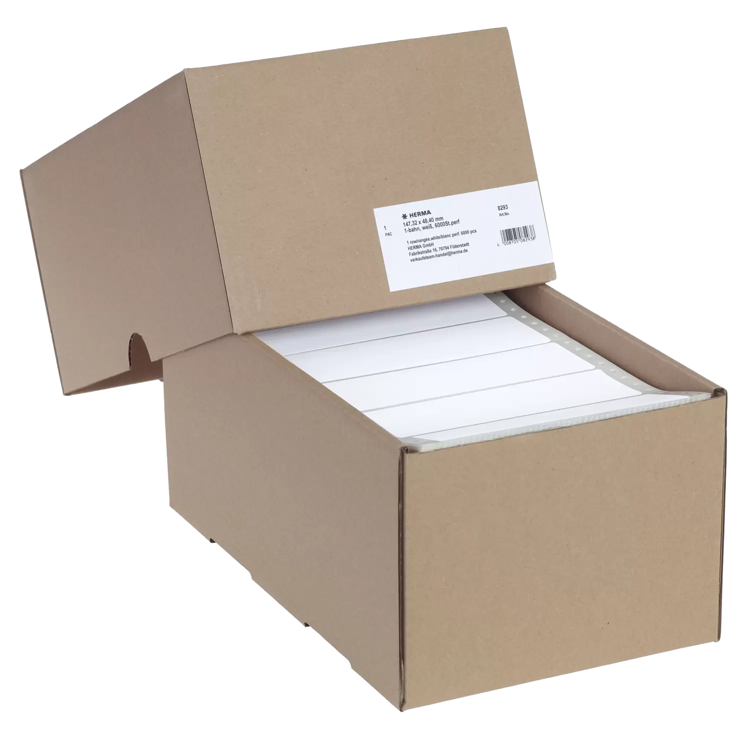 Etichette per computer a modulo continuo, 147,32 x 48,4 mm, 1 pista, bianco, perforata carta