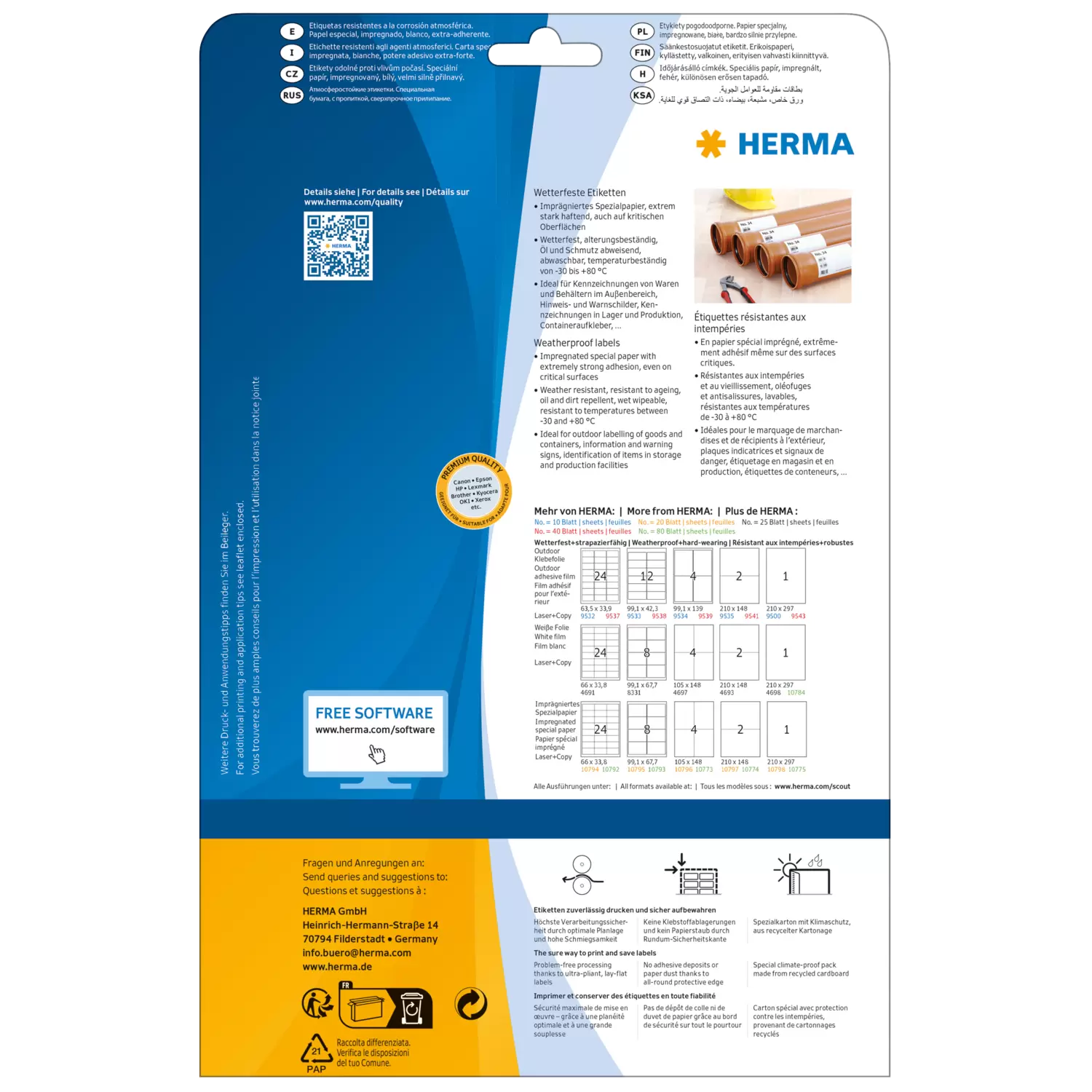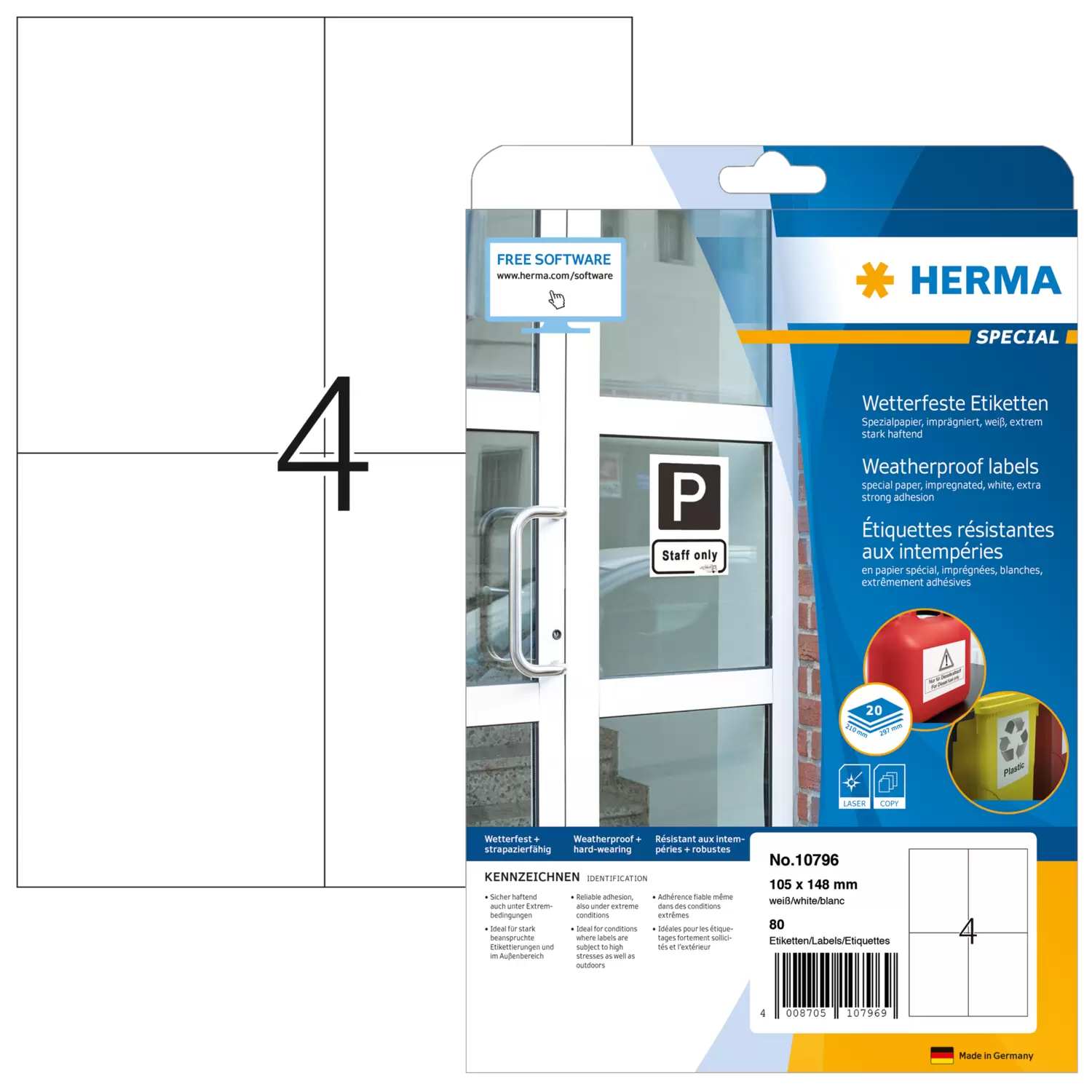Etichette resistenti agli agenti atmosferici, A4, 105 x 148 mm, bianco, estremo potere adesivo, impr
