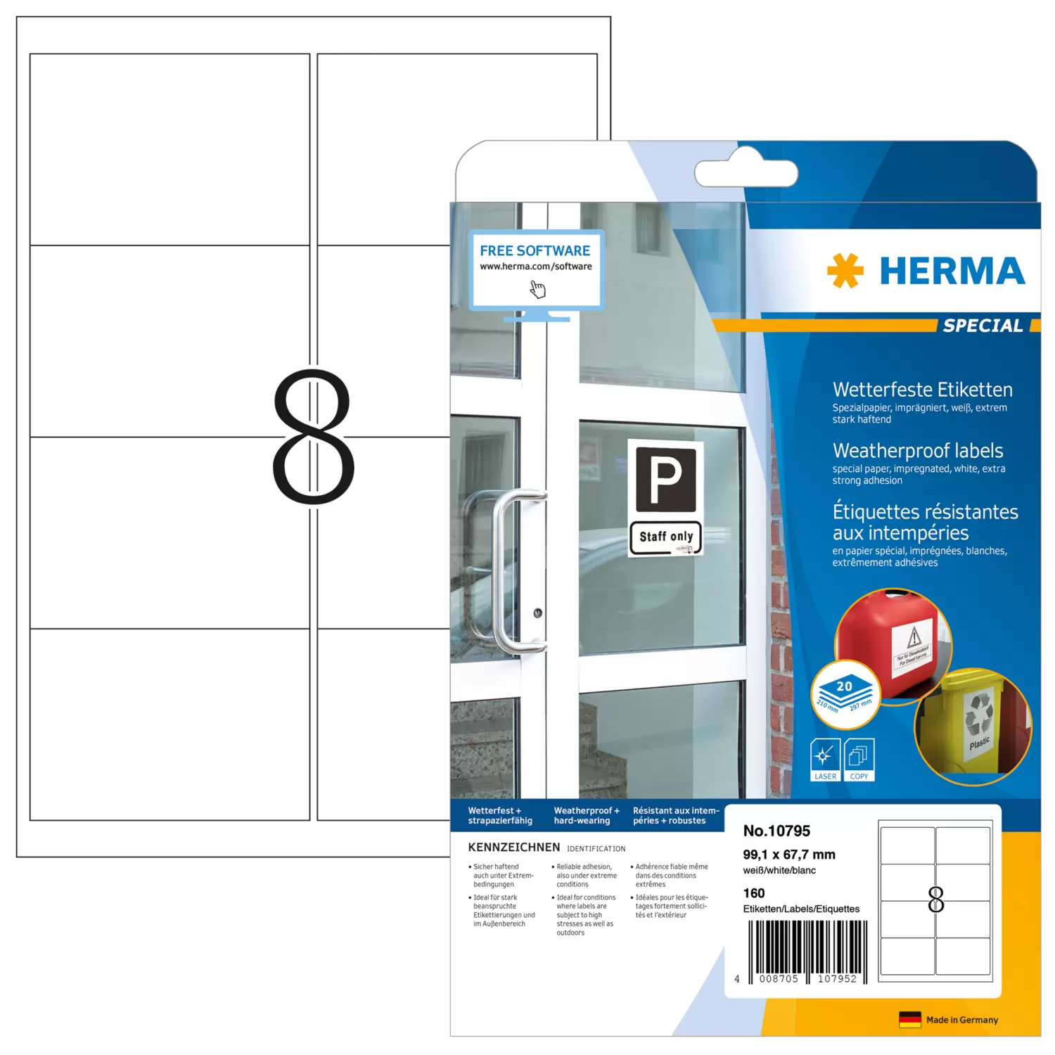 Etichette resistenti agli agenti atmosferici, A4, 99,1 x 67,7 mm, bianco, estremo potere adesivo, im